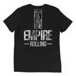 Empire Rolling tri-blend vintage men's tee back view with large Empire Rolling logo and statue graphic