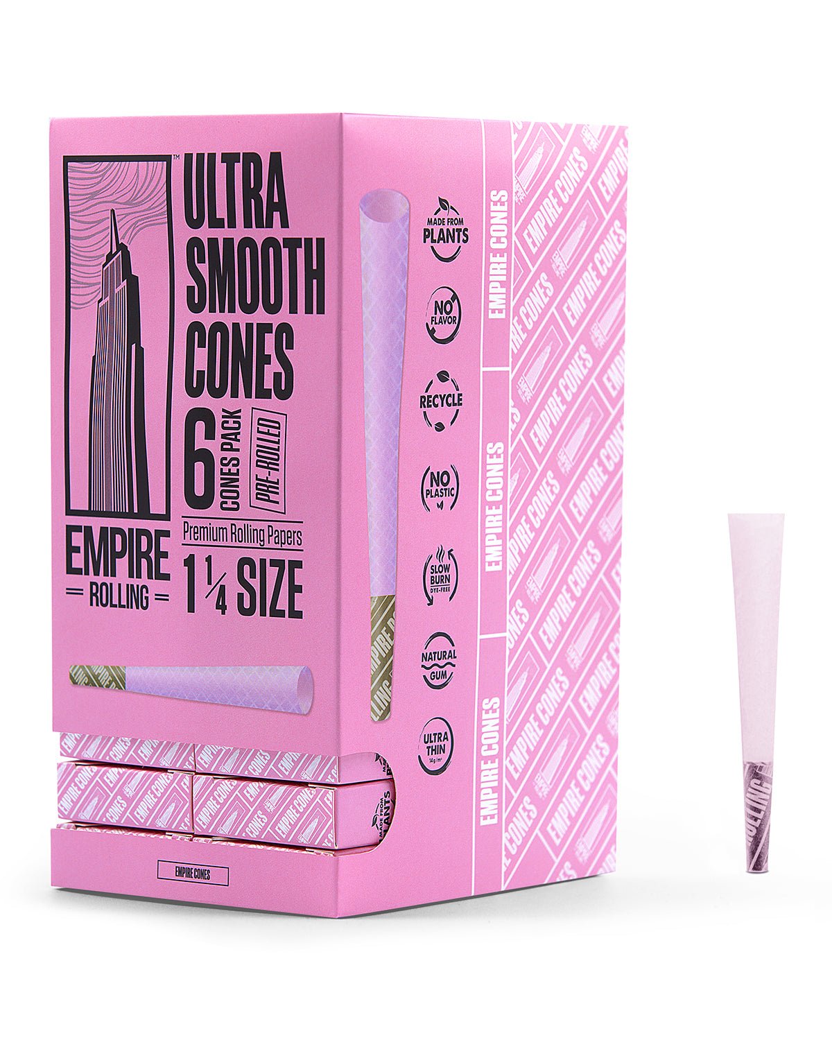 The UltraSmooth Pink Cones combine premium performance with eye-catching color. Each 6-pack includes six 1.25 size pre-rolled cones, made from natural wood pulp and dyed using safe, compliant pink colorants.